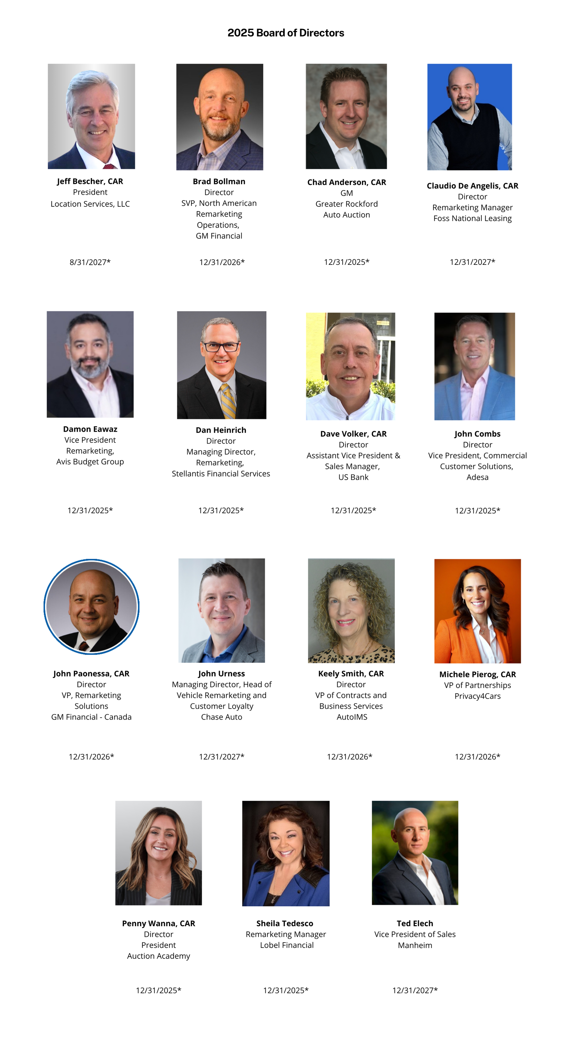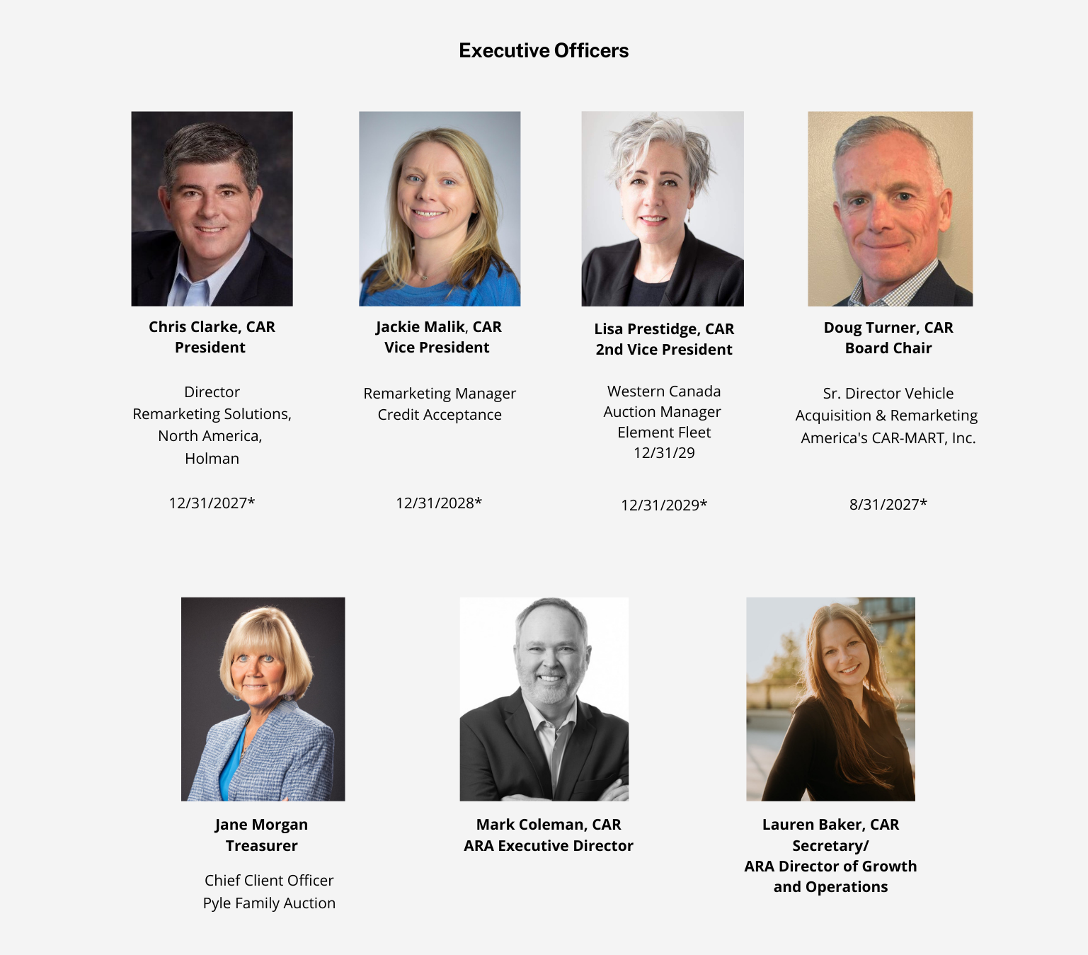 *Term Expiration Date Meeting Minutes Archives are available to members upon request. To obtain minutes, members should send an email to the Executive Director of the ARA at mark@remarketingalliance.com